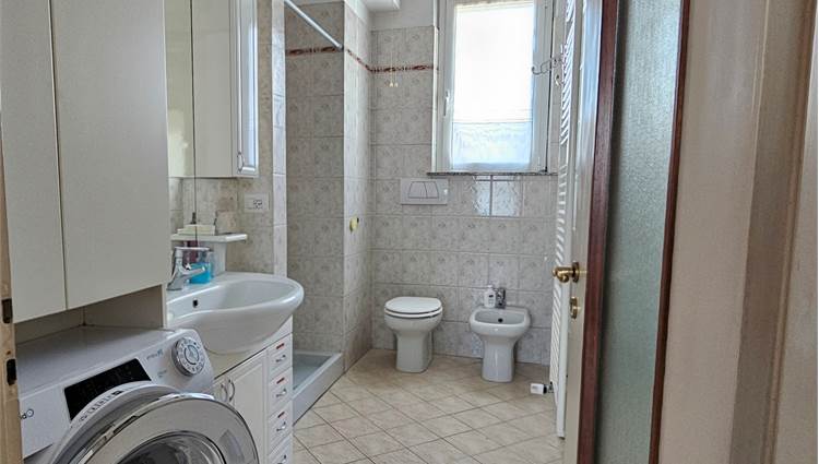 Bagno: Finestrato, con doccia in muratura e angolo lavanderia