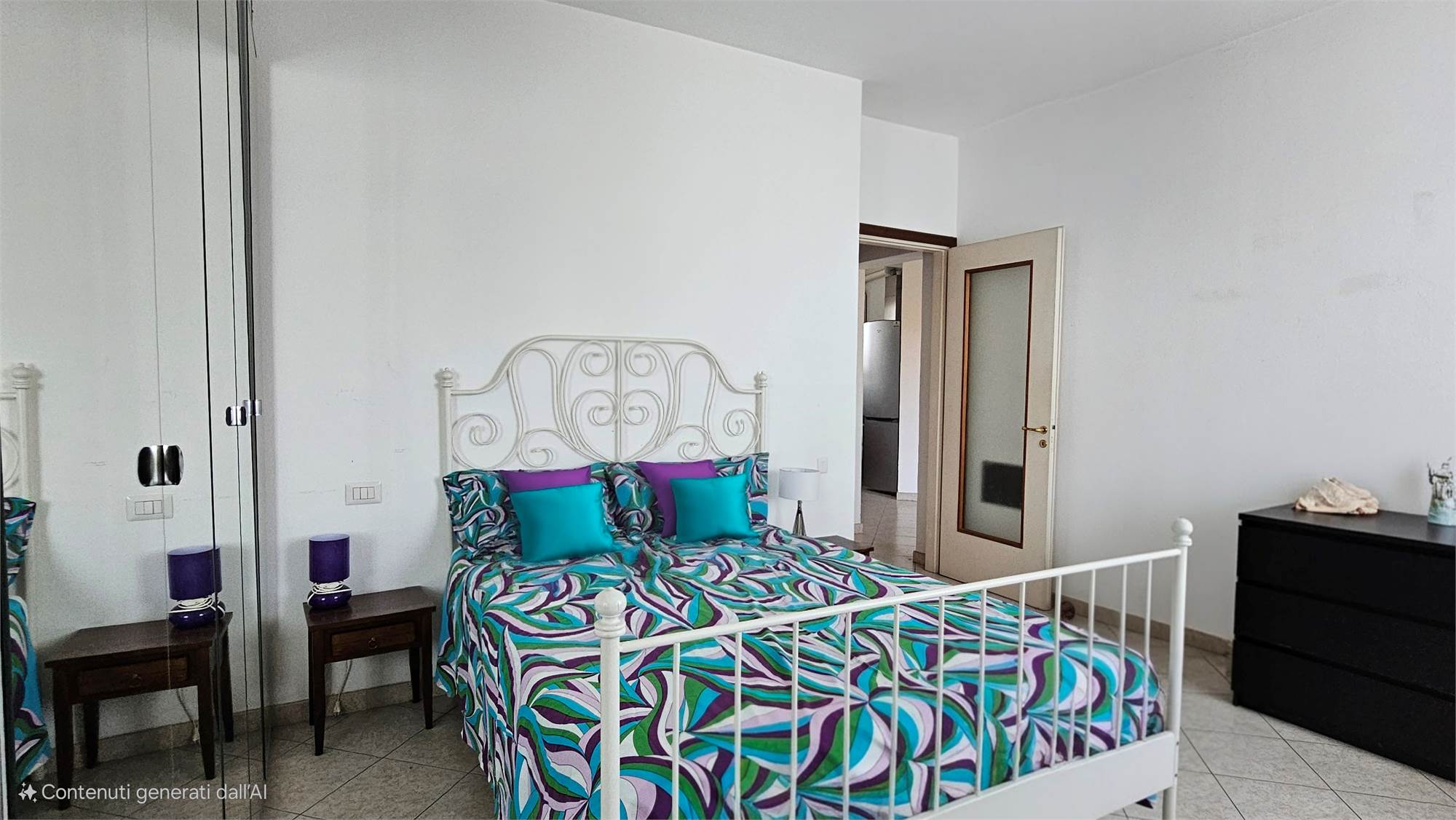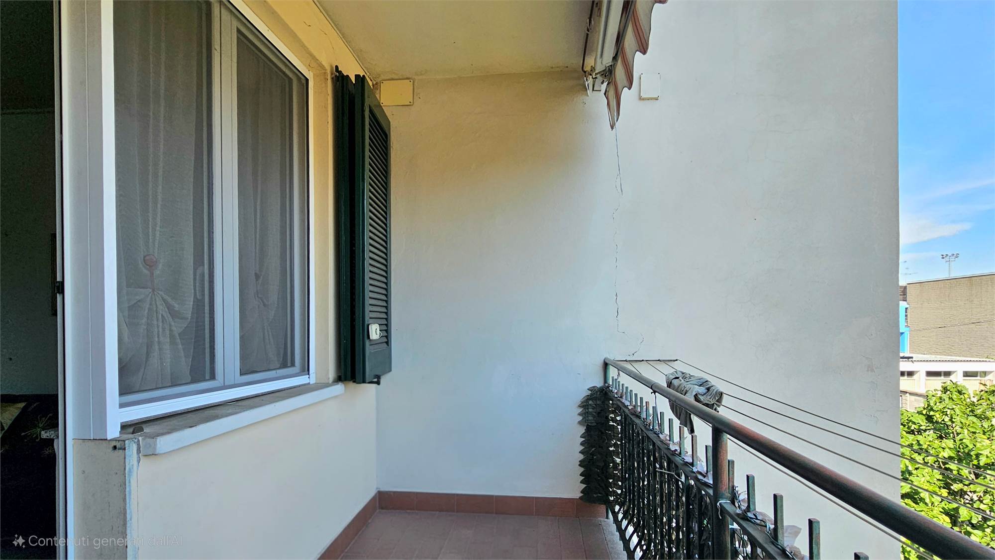 Ingresso, soggiorno luminoso con affaccio su balcone coperto, cucina a vista, disimpegno, due camere da letto e bagno finestrato con doccia in muratura e angolo lavanderia.