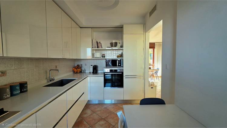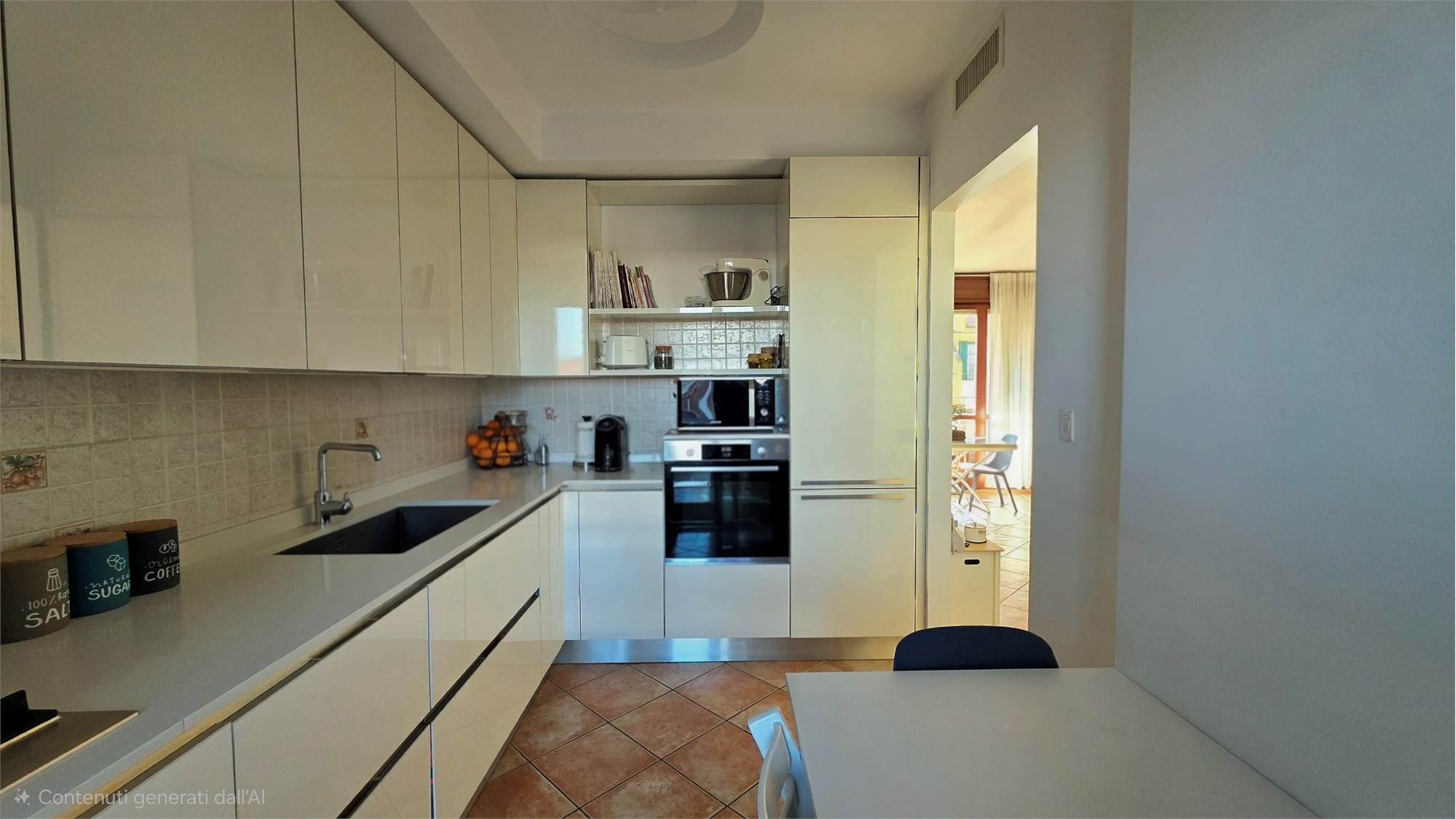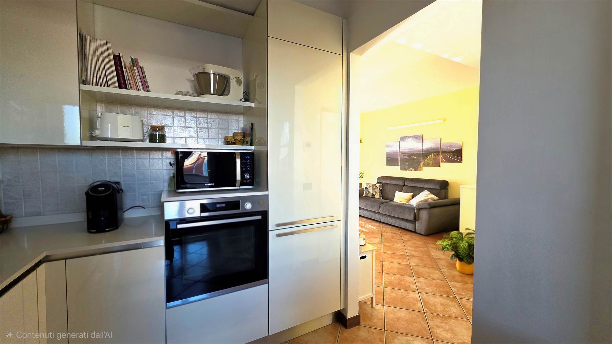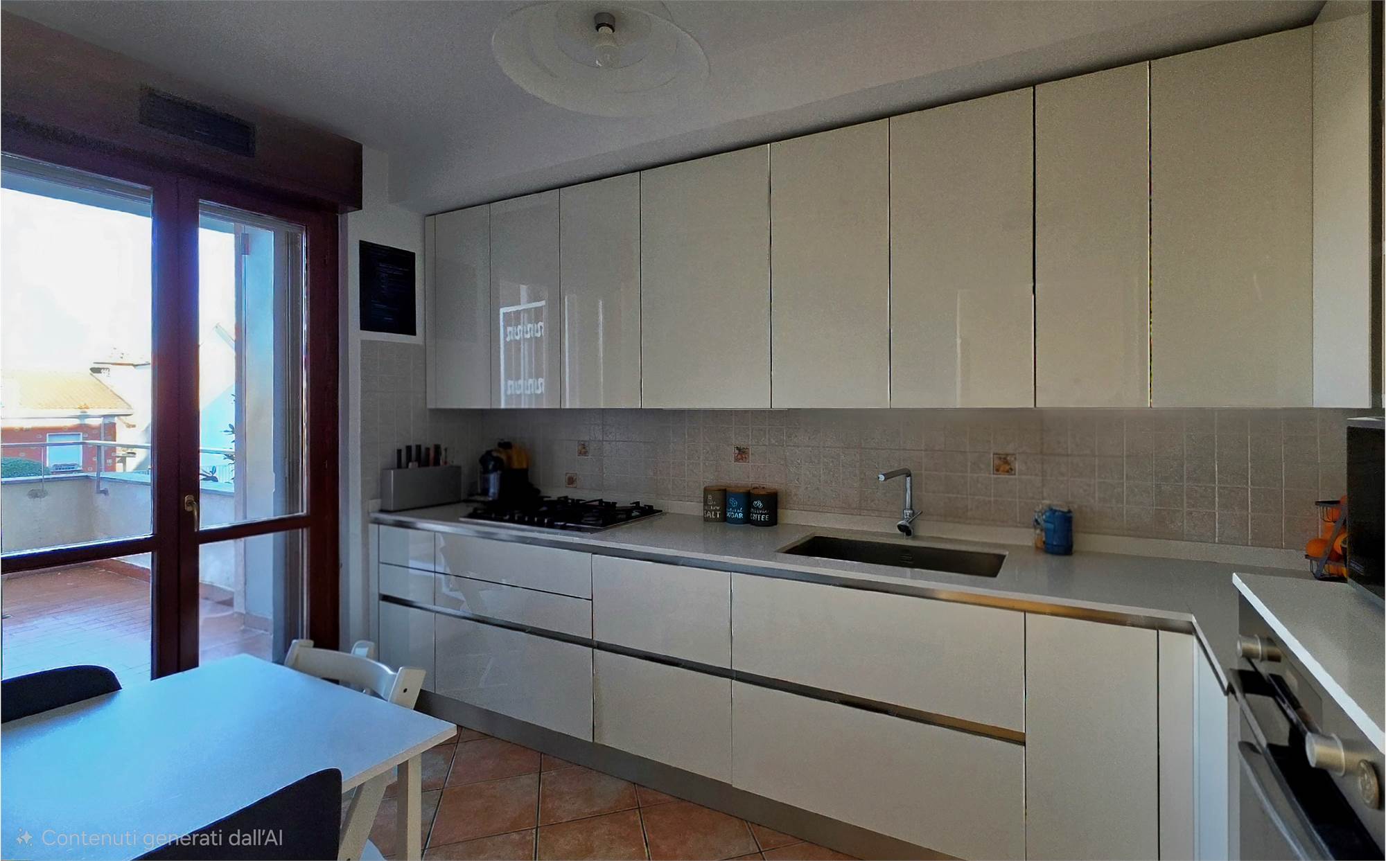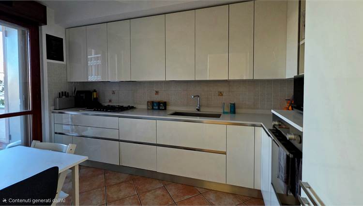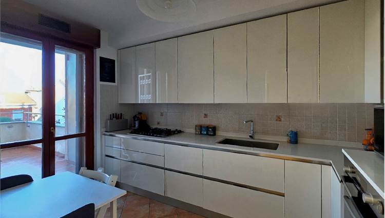 La cucina è abitabile, indipendente, con il suo terrazzo: ordine e funzionalità, per uno spazio da vivere.