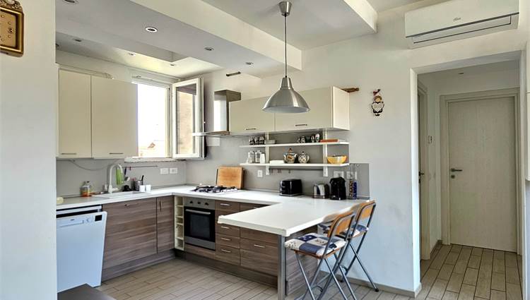 L'appartamento è così suddiviso: ingresso, soggiorno con cucina a vista, disimpegno, due comode camere da letto e bagno con doccia.