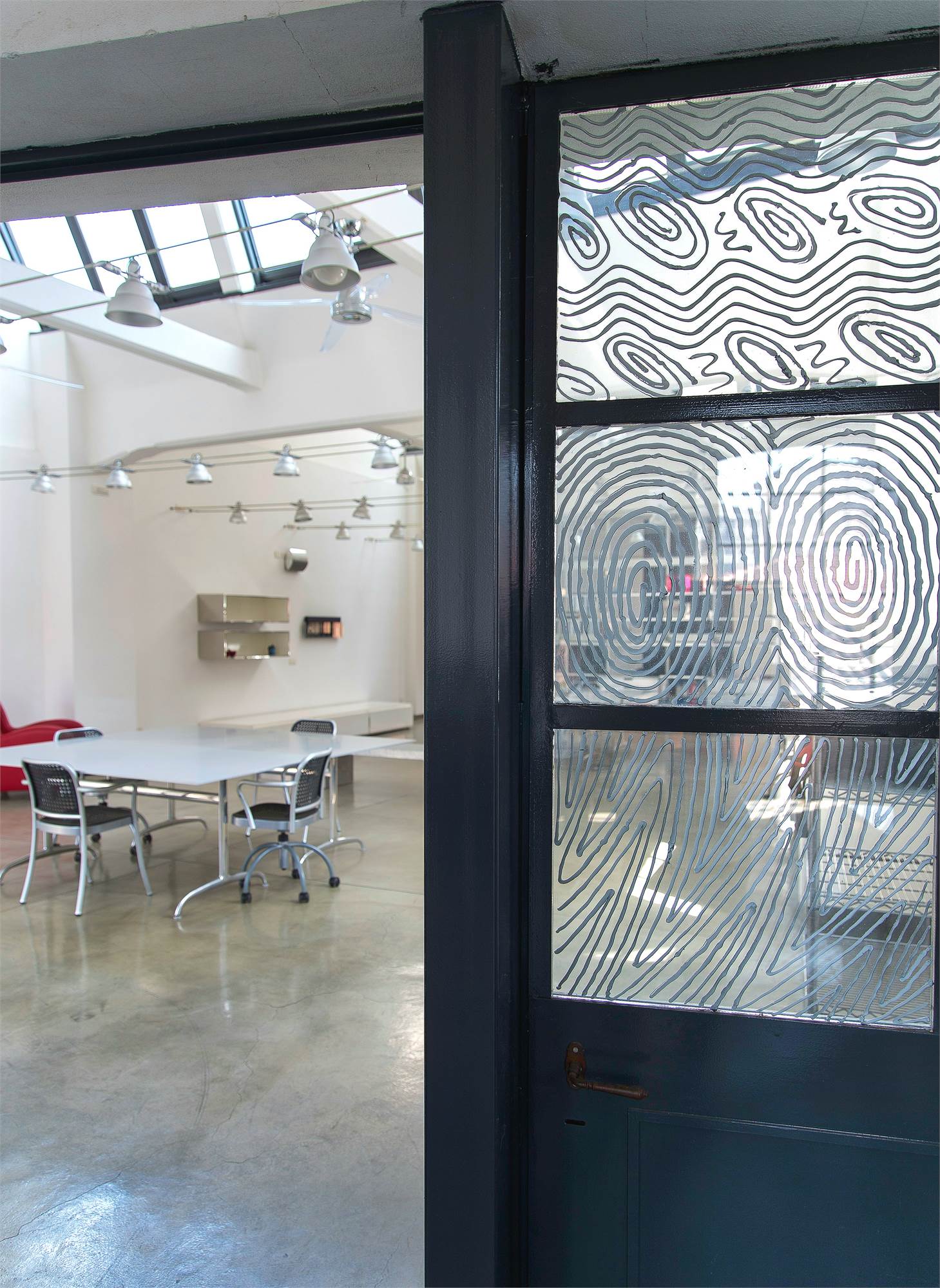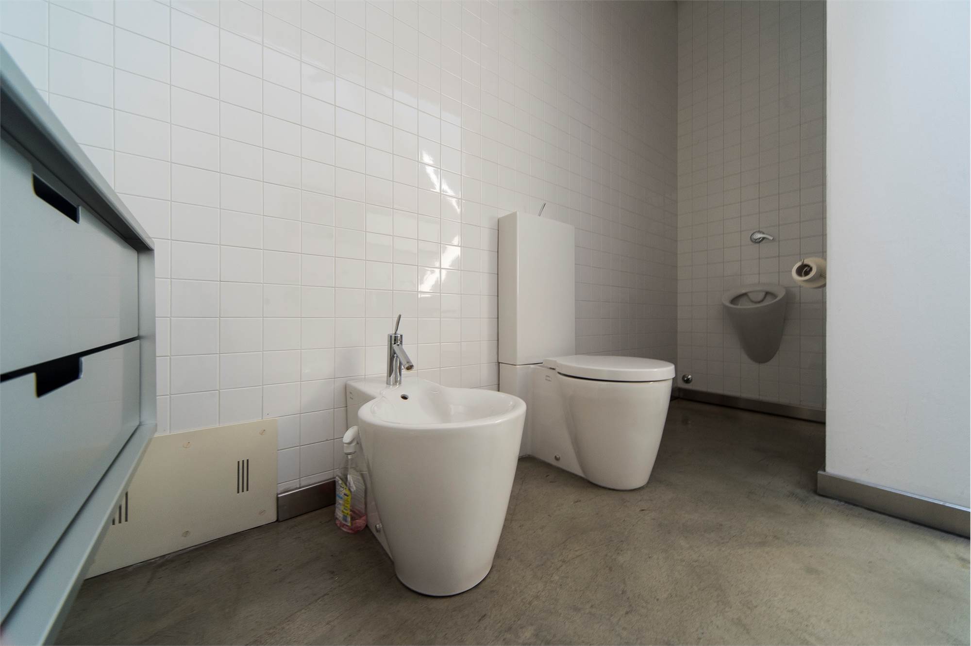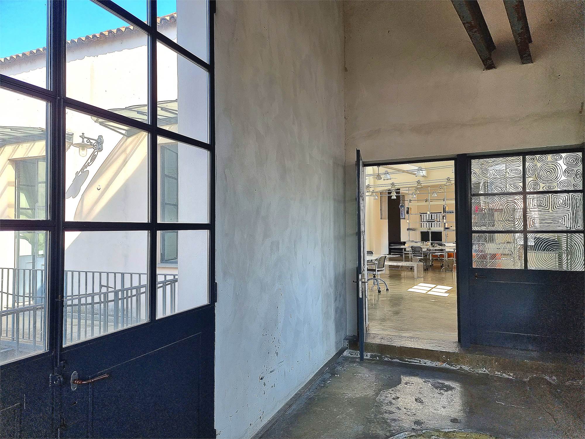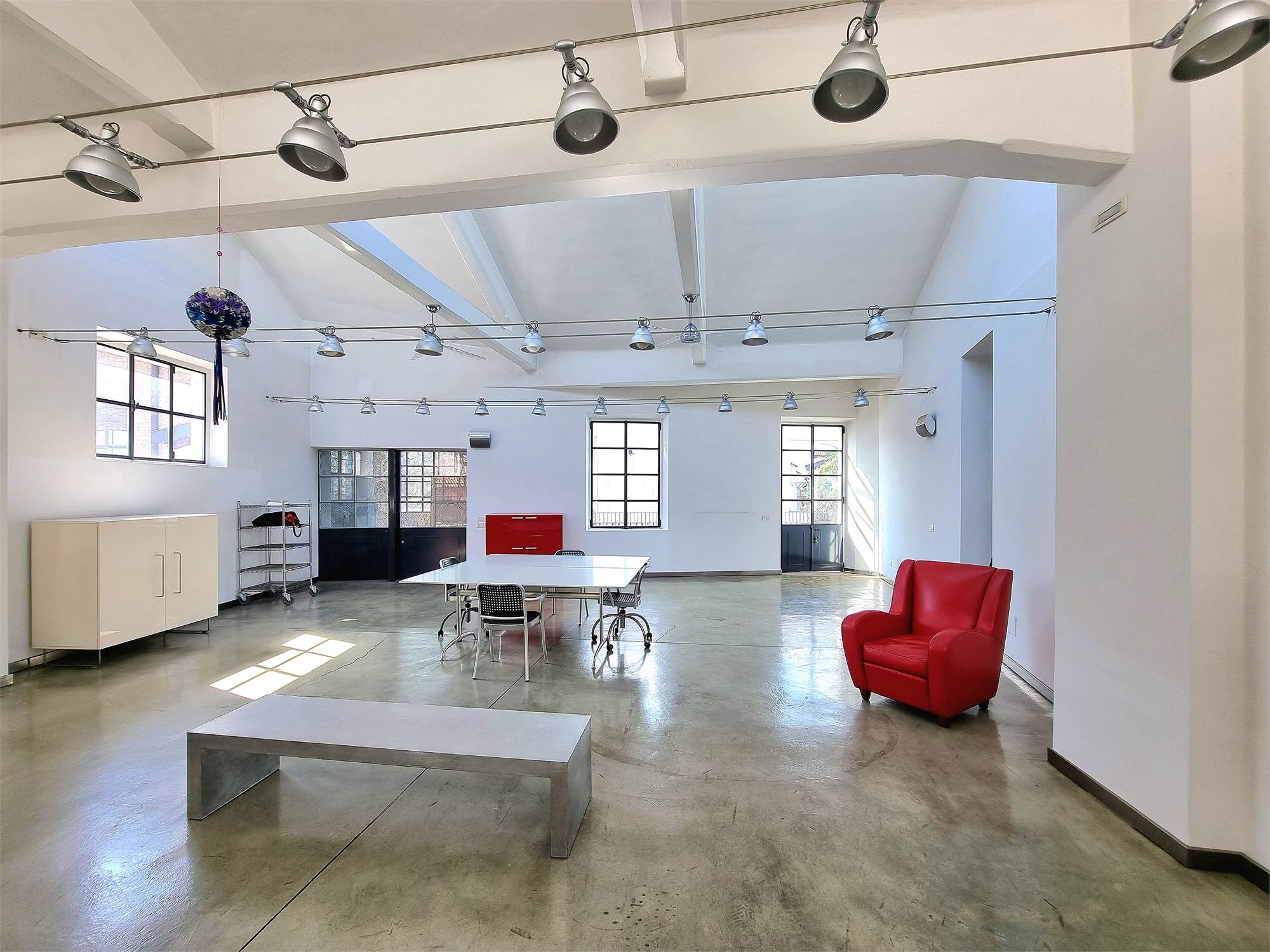 L'accesso all'abitazione avviene dall'attuale modelleria, un ambiente open space caratterizzato da ampie vetrate in ferro di stampo industriale, dislocate lungo la doppia esposizione e dalla copertura a shed: la luce diventa il primo grande elemento di arredo di questo spazio, facilmente reinterpretabile come zona living e in cui dare forma alla cucina, alla zona pranzo, alla conversazione/relax. Ben 22o mq, in cui sono già inseriti due locali adiacenti uno adibito a servizio igienico e uno ad ufficio, dalla pavimentazione omogenea in resina cementizia color cenere che celano il riscaldamento radiante già presente.